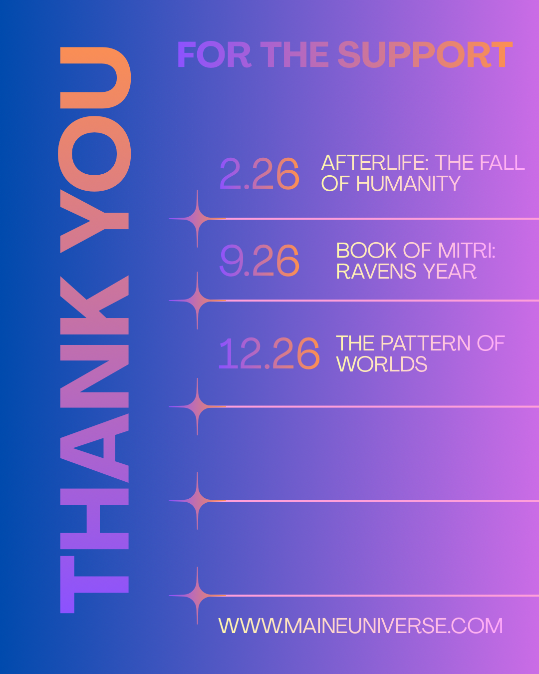 I have crafted countless stories in my mind and have brought only a few to the page. I know it's a difficult process for a mind that's always discovering. That's why I've decided to start right here: by sharing my imagination, my worlds, my characters, and the stories I create with everyone.